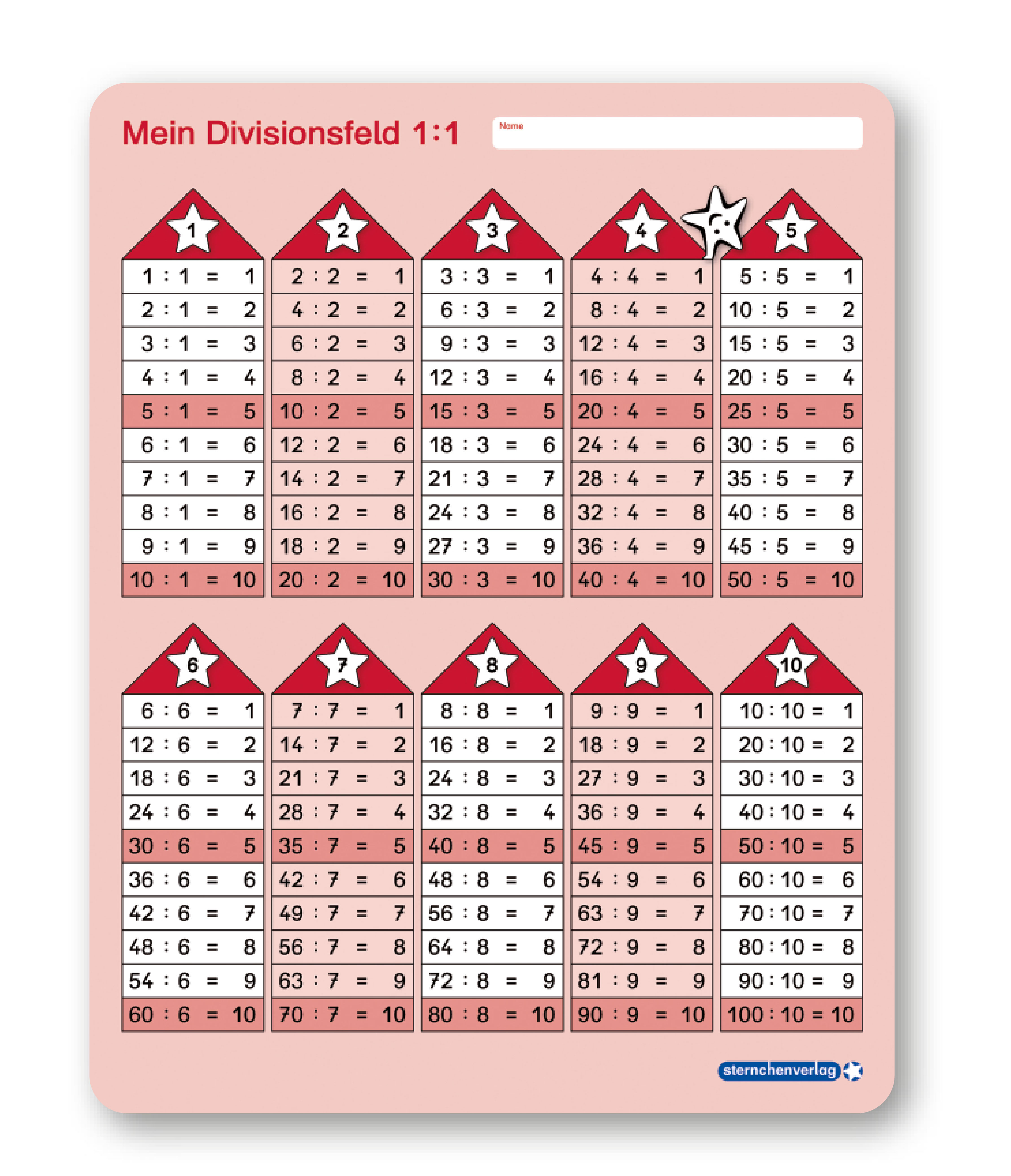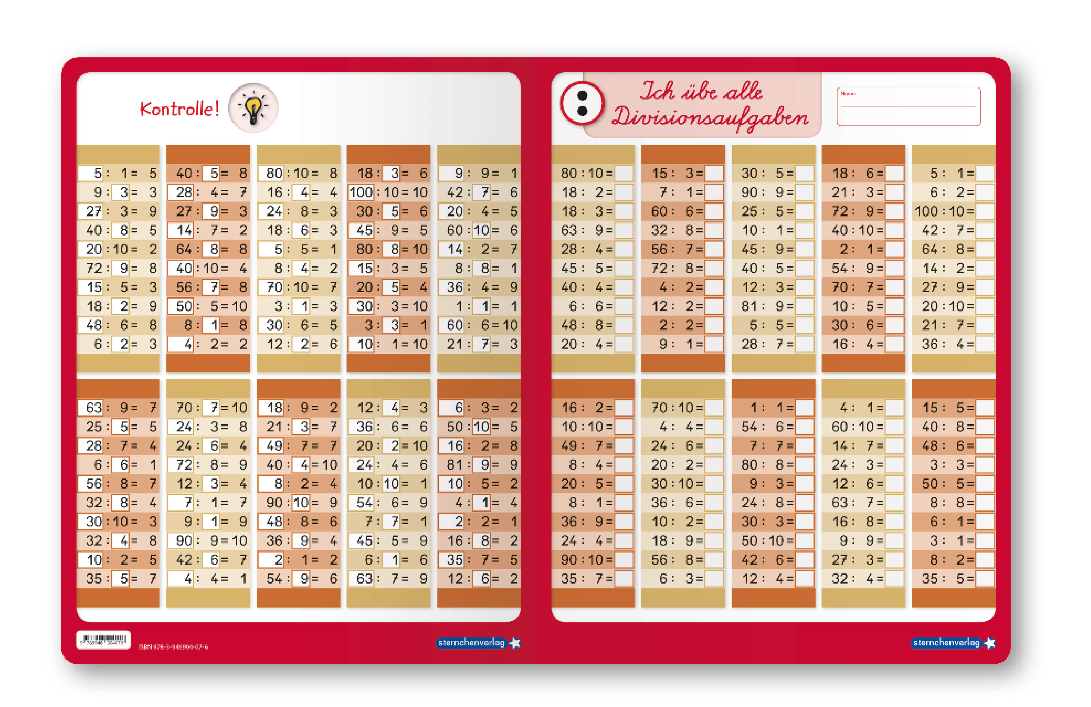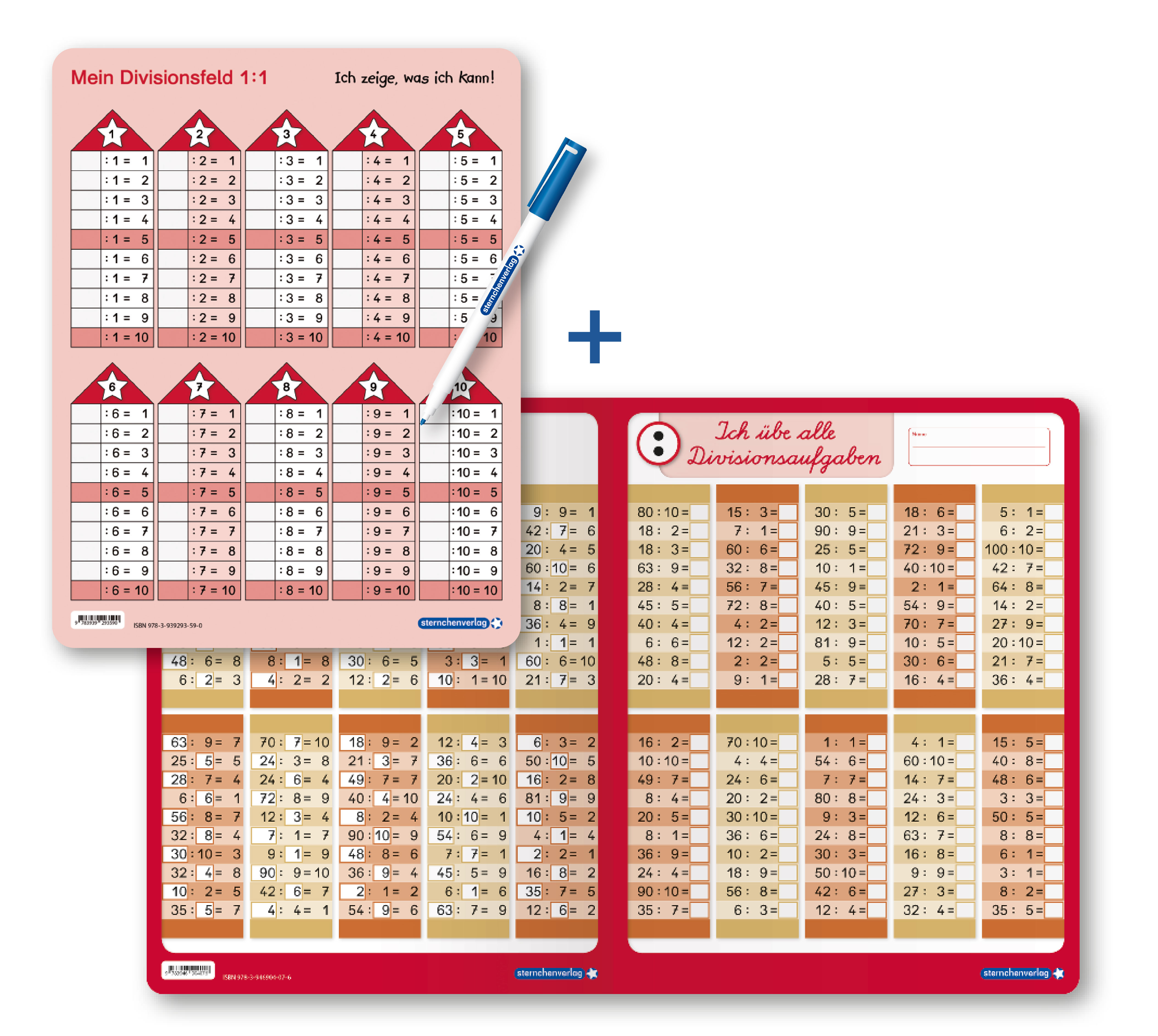 - Kurzübersicht: Set aus: "Ich übe alle Divisionsaufgaben" und "Mein Divisionsfeld" mit Spezialstift