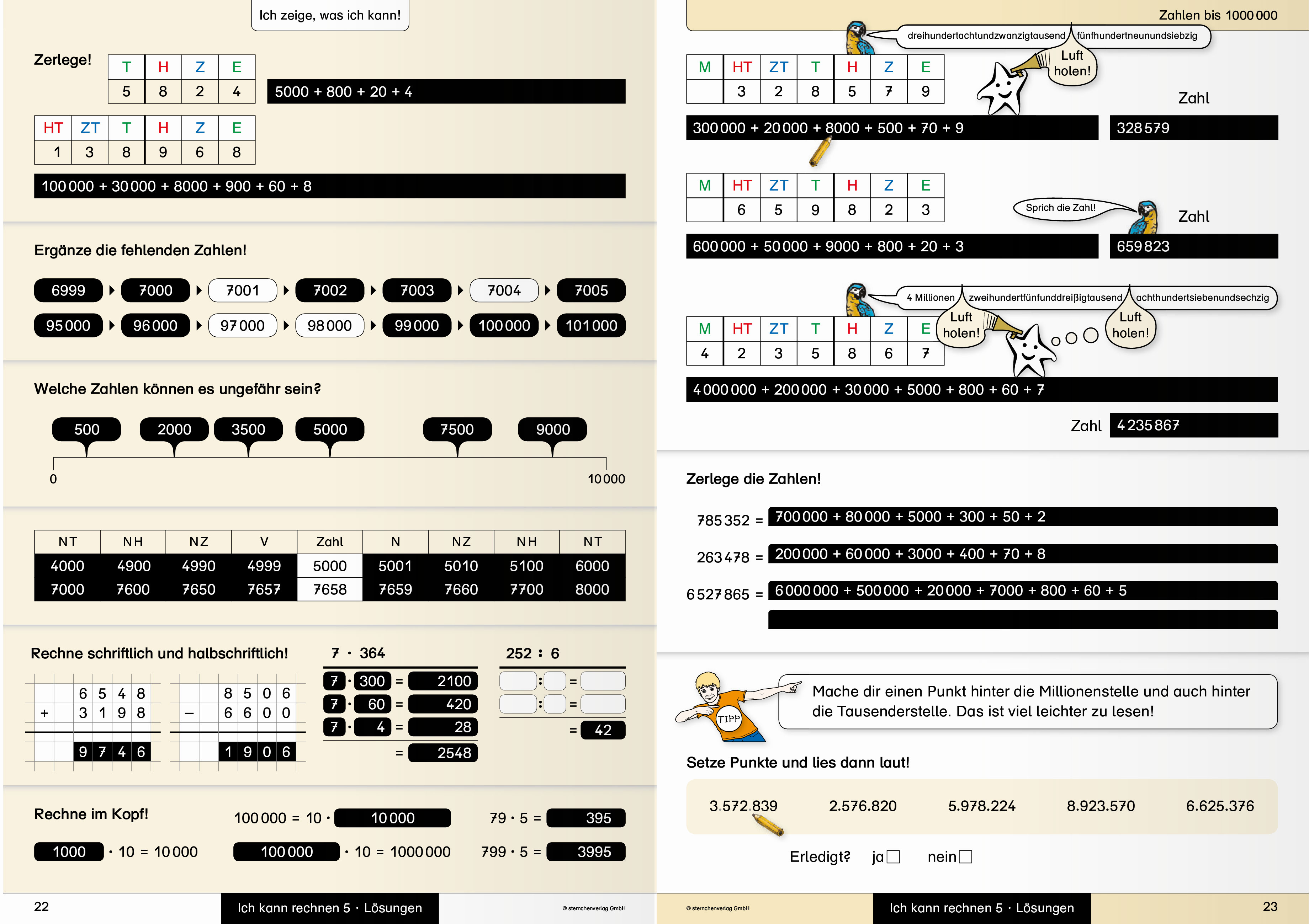 Lösungsheft als Download zu dem Schülerarbeitsheft "Ich kann rechnen 5" Schülerarbeitsheft für die 4. Klasse mit Einführung in den Zahlenraum bis 1 000 000