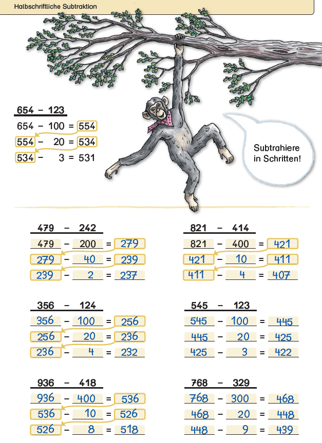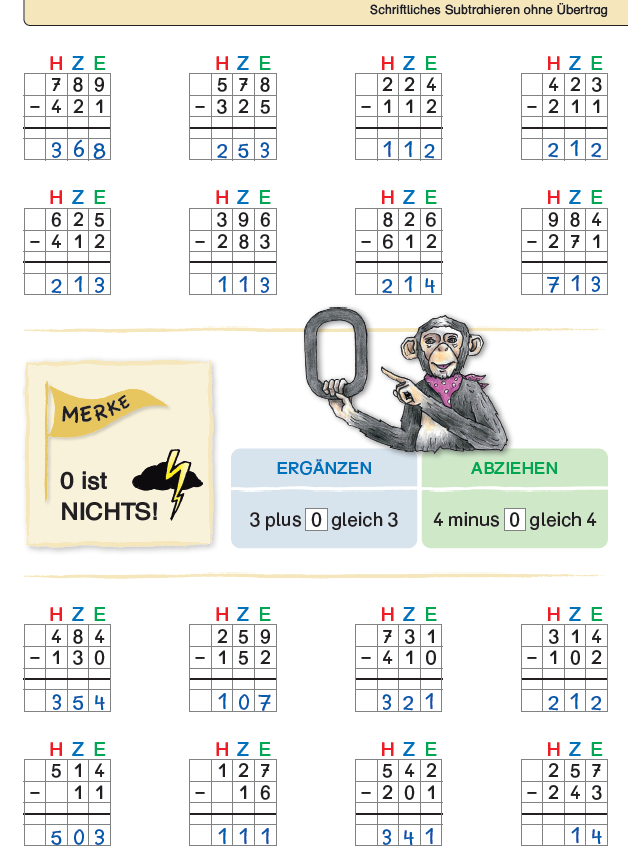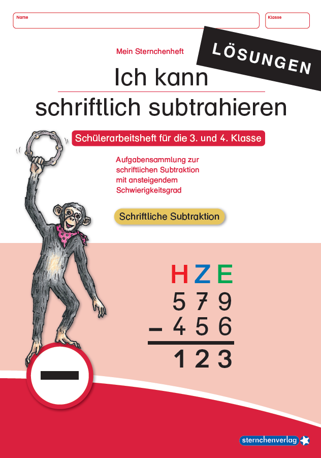 Im Sternchenheft „Ich kann schriftlich subtrahieren“, geeignet für die 3. und 4. Klasse, wird die schriftliche Subtraktion anschaulich erklärt und geübt.