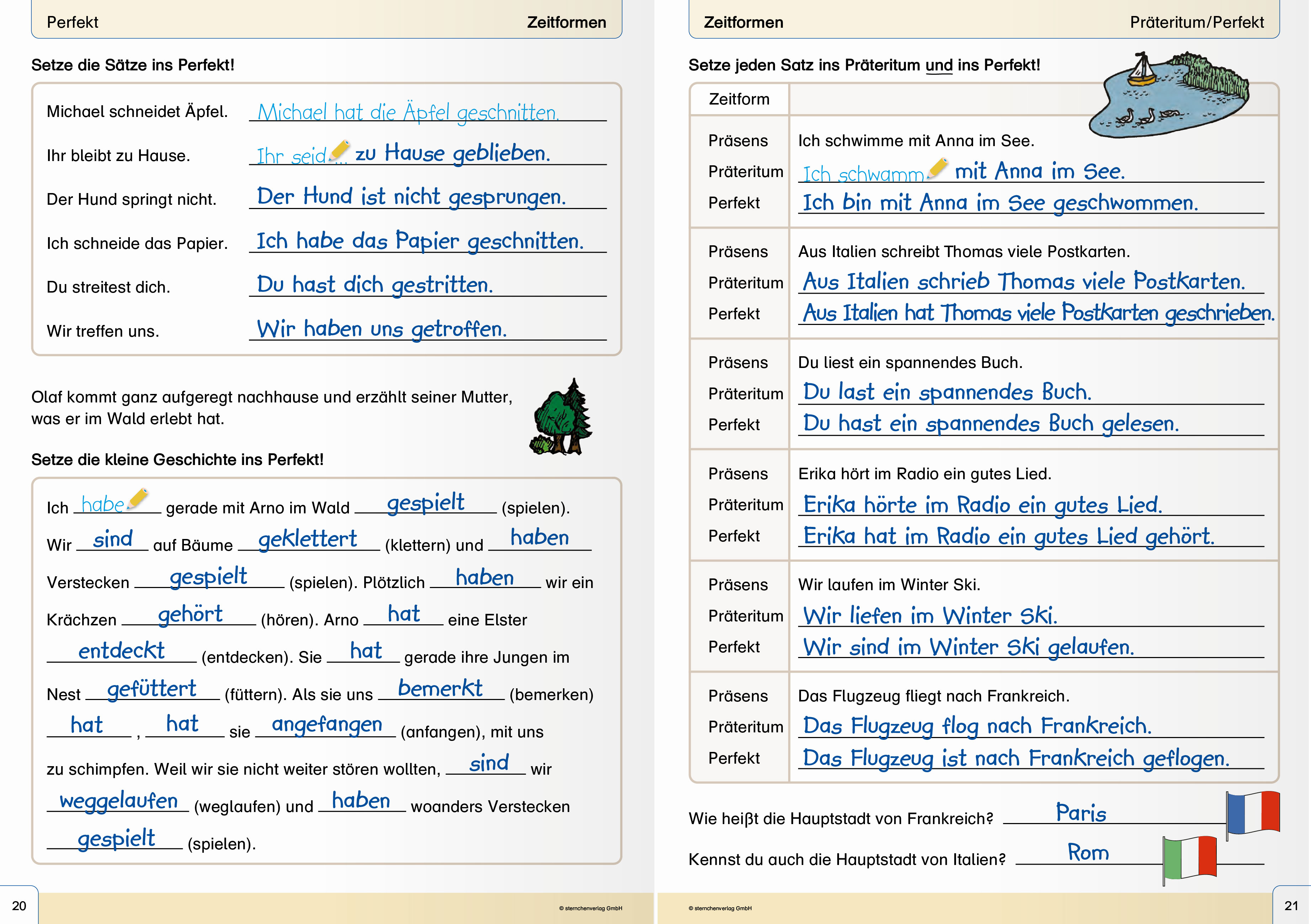 Das neue Sternchenheft »Mein Grammatikheft 3/4« behandelt die Grammatikthemen des dritten und vierten Schuljahres. Diese sind leicht verständlich aufgebaut, die etwas schwierigeren Themen erkennt das Kind an den roten Balken an der Seite. Hier sollte die Lehrkraft individuell entscheiden, ob das Thema vom Kind bearbeitet oder ausgelassen werden soll.