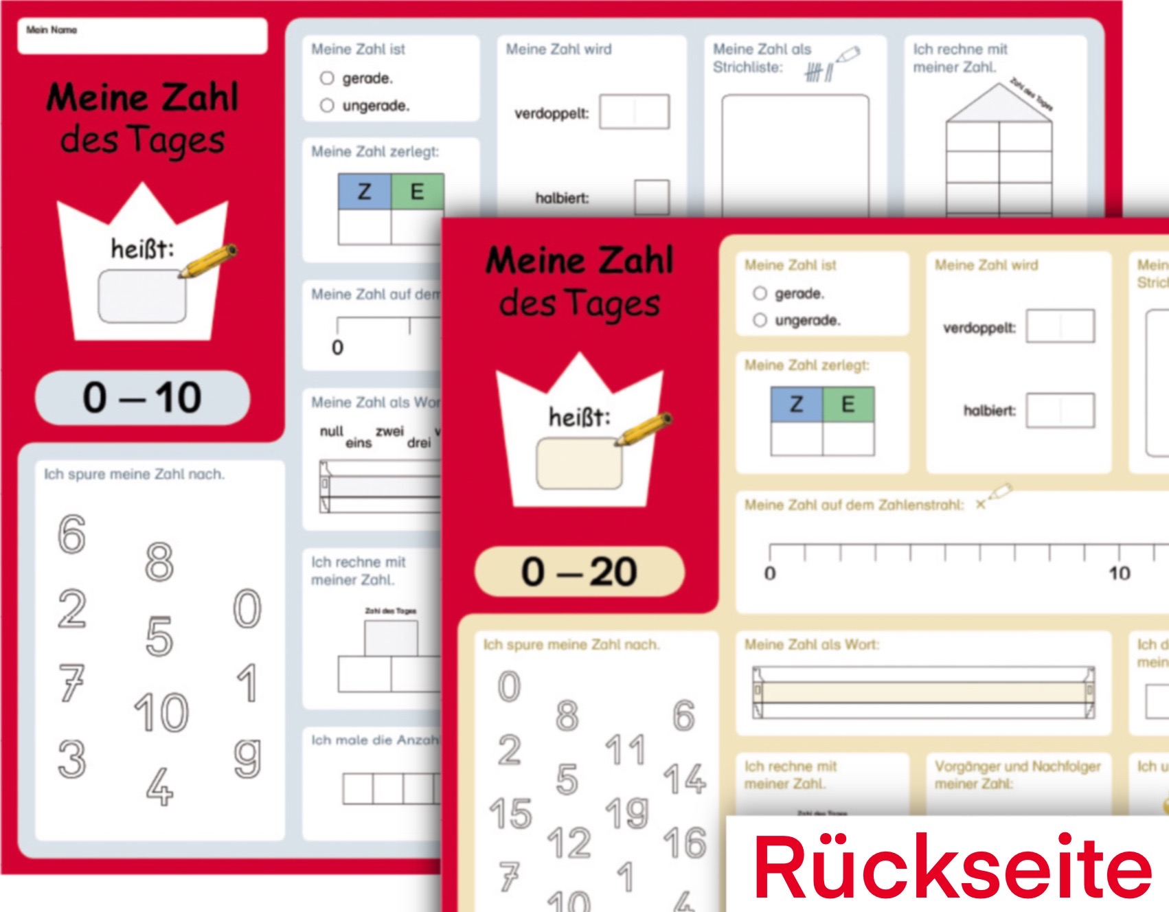 Meine Zahl des Tages 0-10 und 0-20 - Lerntafel ohne Stift
