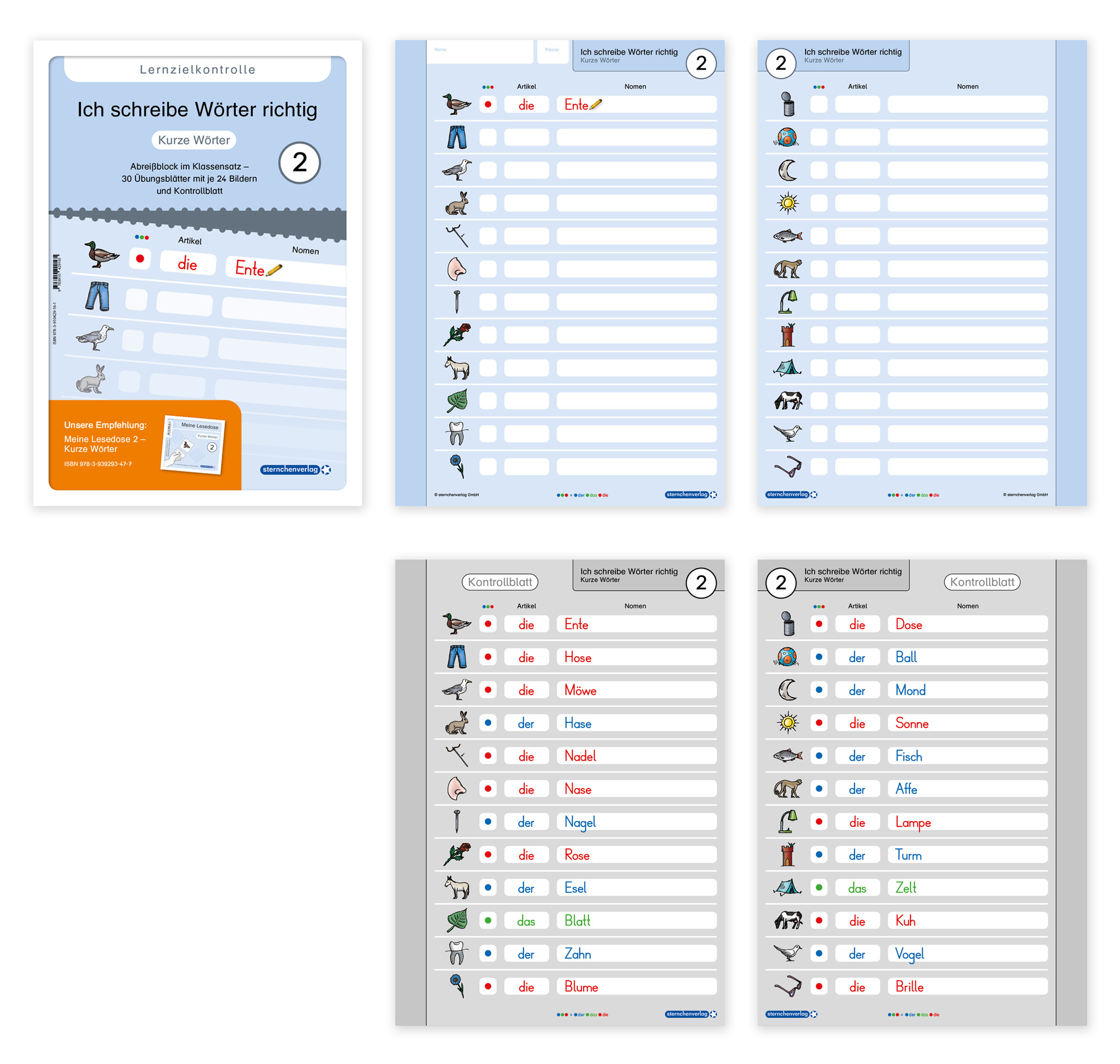 - Kurzübersicht: Abreißblock im Klassensatz mit 30 Übungsblättern und 24 Bildern