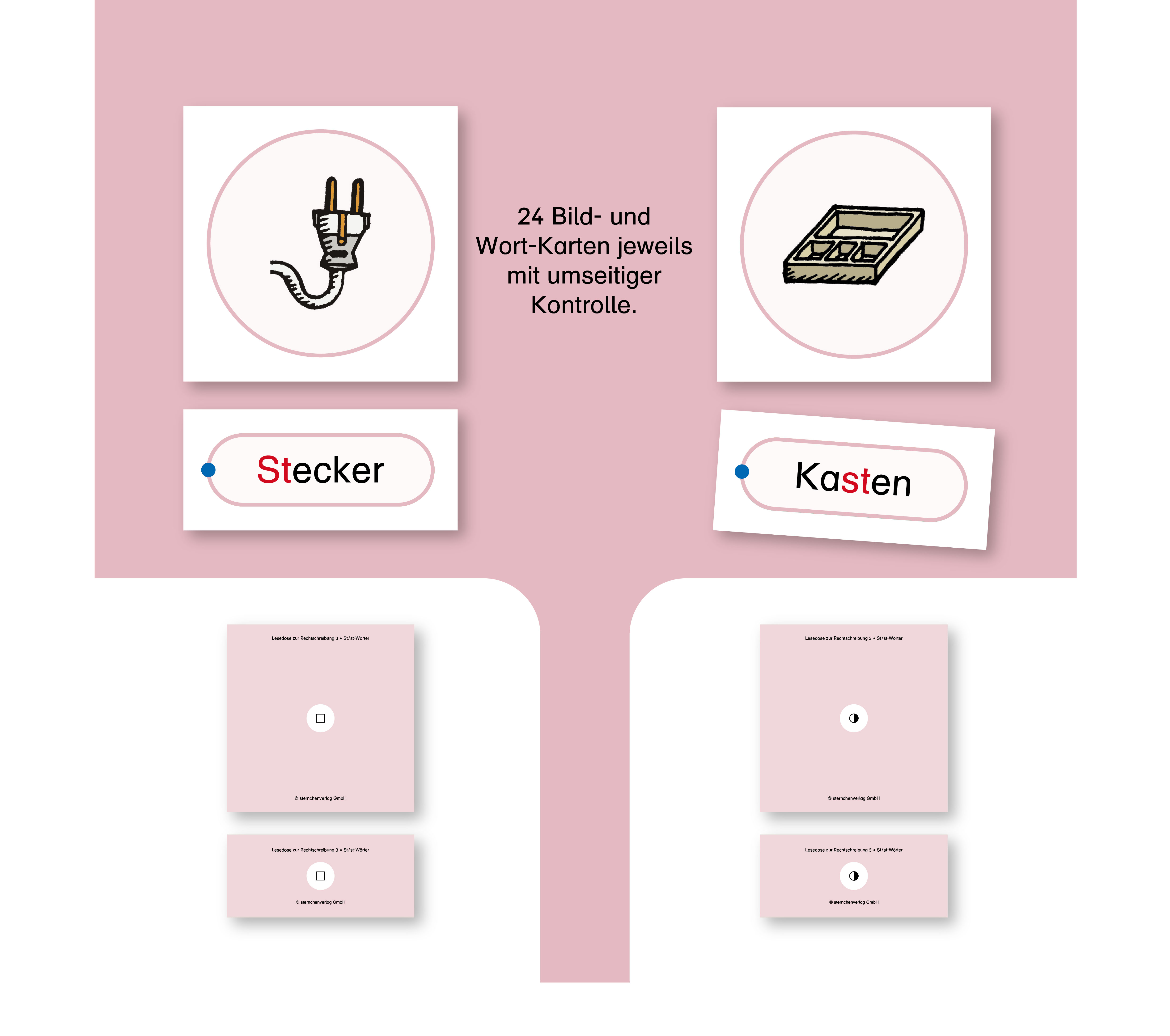 - Kurzübersicht: Meine Rechtschreibdose mit 24 Wort-Bild-Karten in einer stabilen und stapelbaren Klarsichtbox mit Deckel