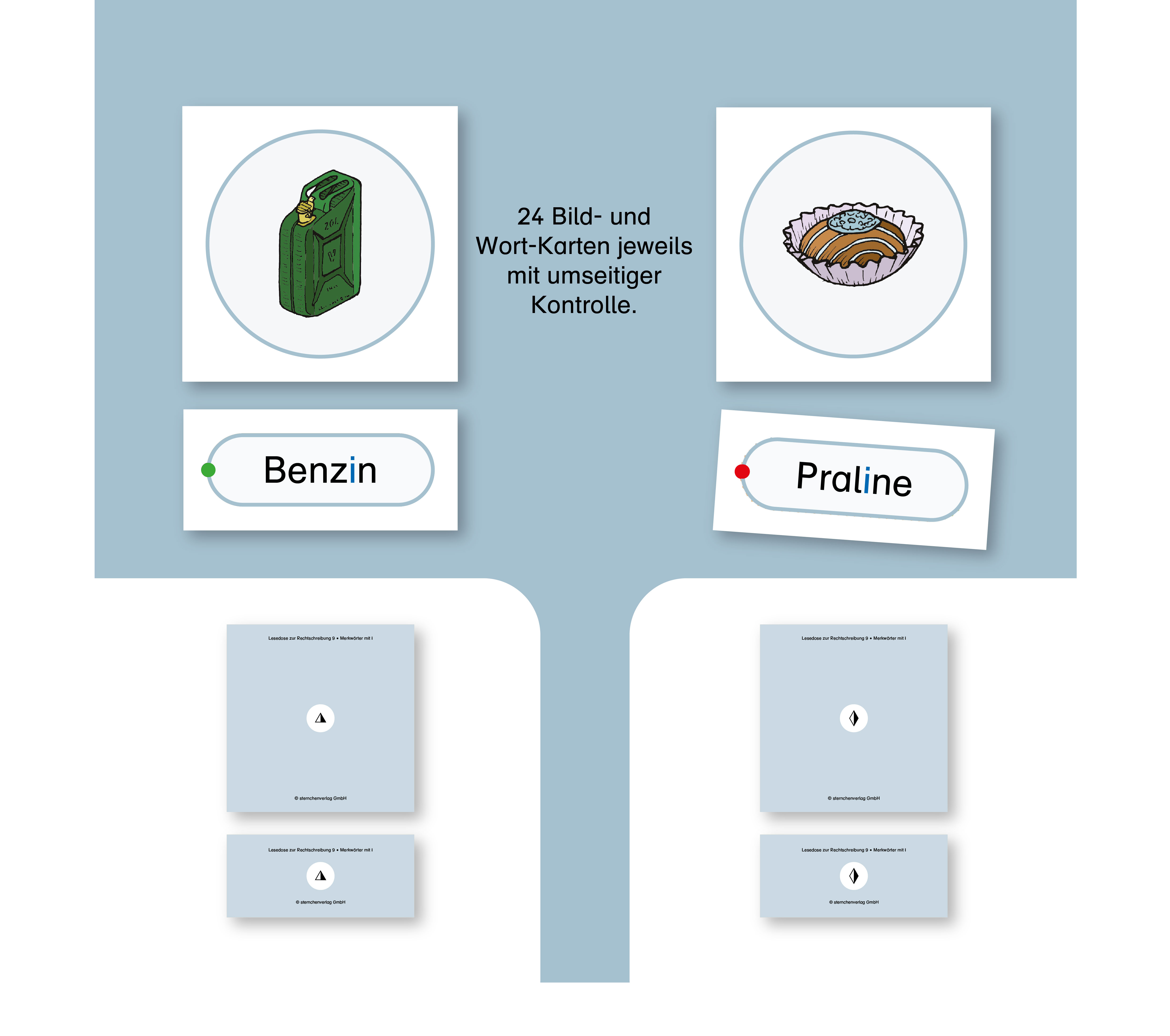 - Kurzübersicht: Meine Rechtschreibdose mit 24 Wort-Bild-Karten in einer stabilen und stapelbaren Klarsichtbox mit Deckel