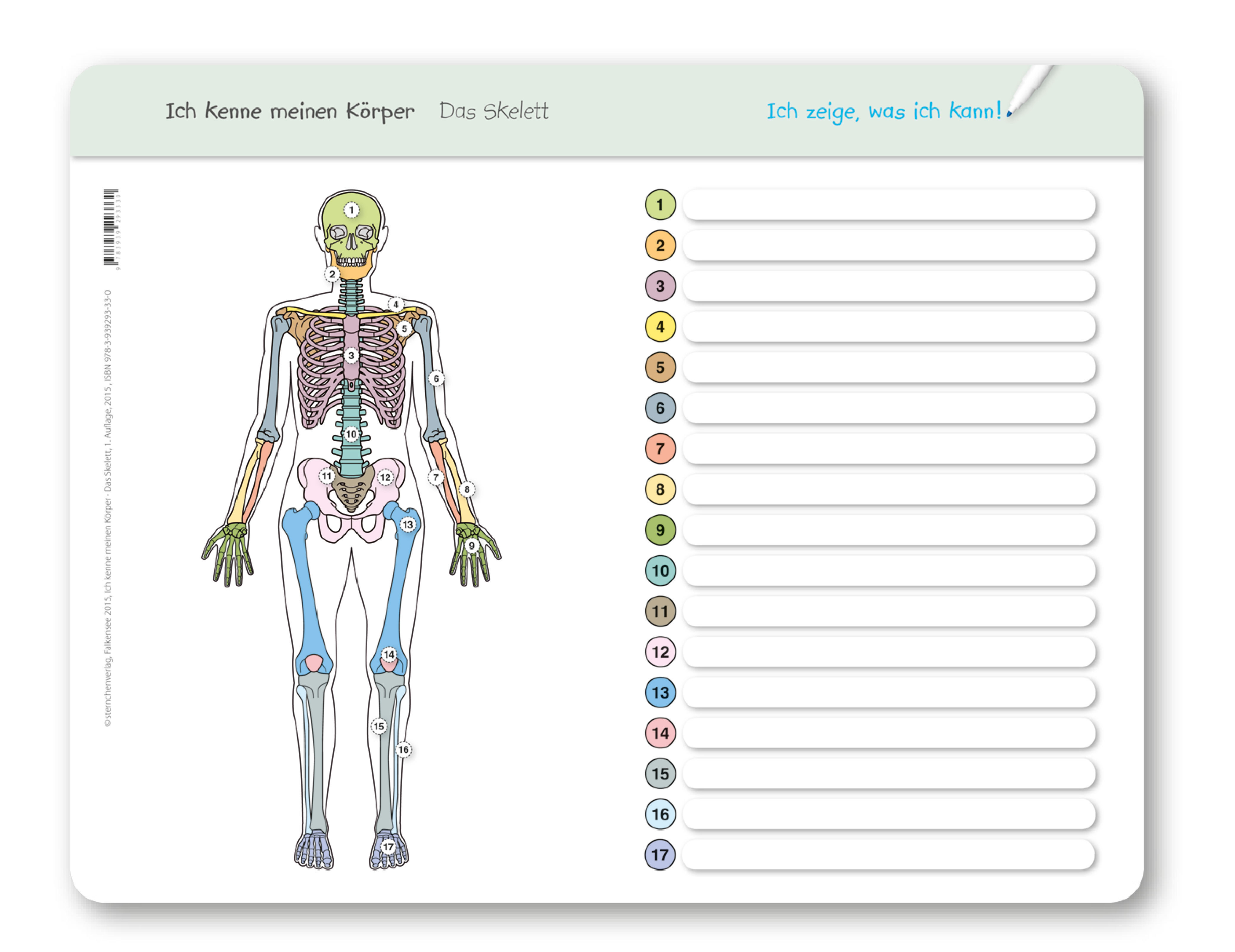 Ich kenne meinen Körper - Das Skelett - Lerntafel ohne Stift