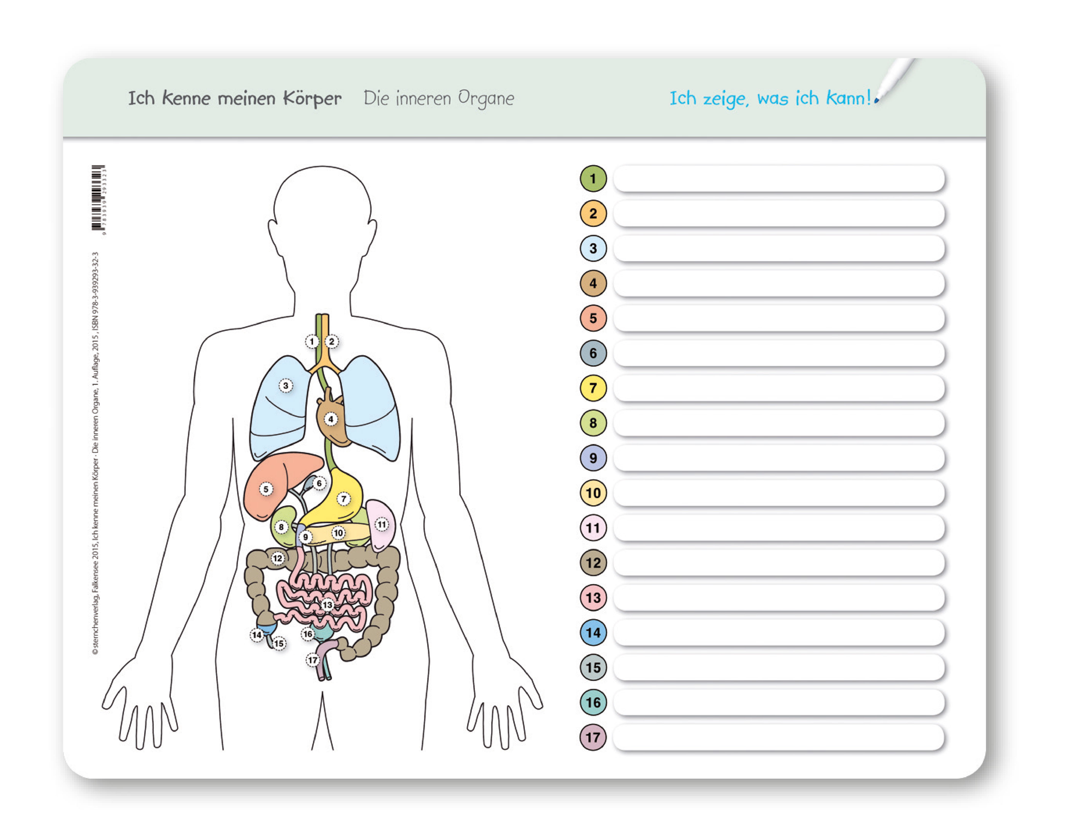 Hier können die Lage und Bezeichnungen der inneren Organe des Menschen immer wieder geübt werden.